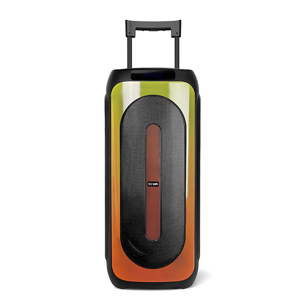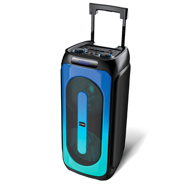 Портативная акустика, AUX кабель, кабель для зарядки, беспроводной микрофон, пульт ДУ, руководство по эксплуатации, гарантийный талон.
