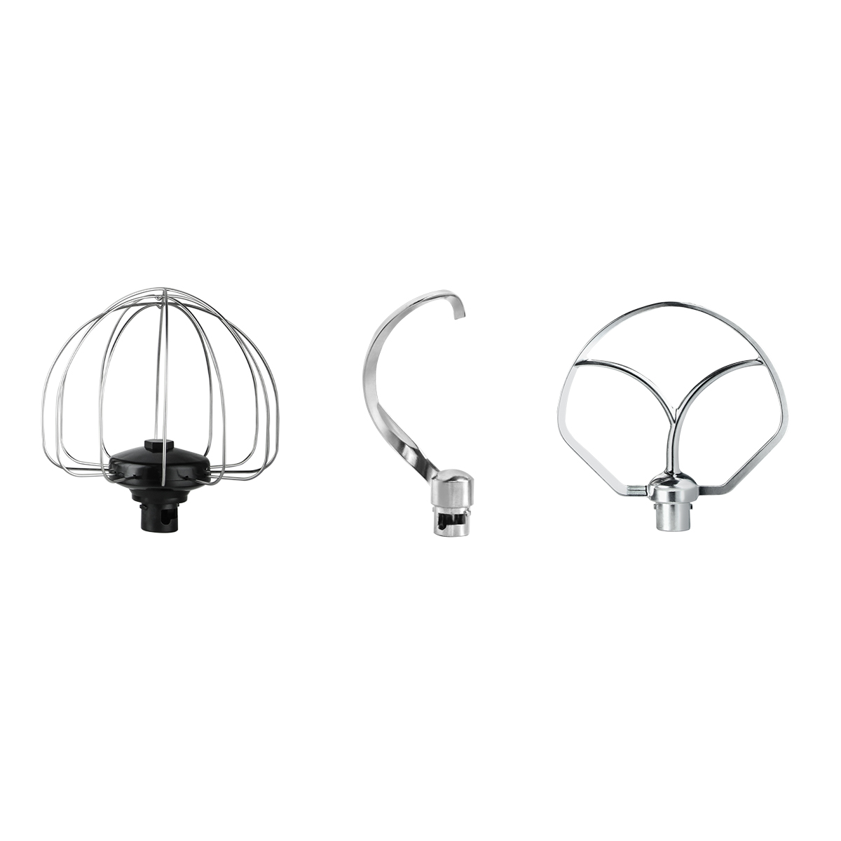 Планетарный миксер, чаша, крышка чаши, металлический венчик для взбивания, крюк для замешивания теста, насадка для смешивания, руководство по эксплуатации, гарантийный талон