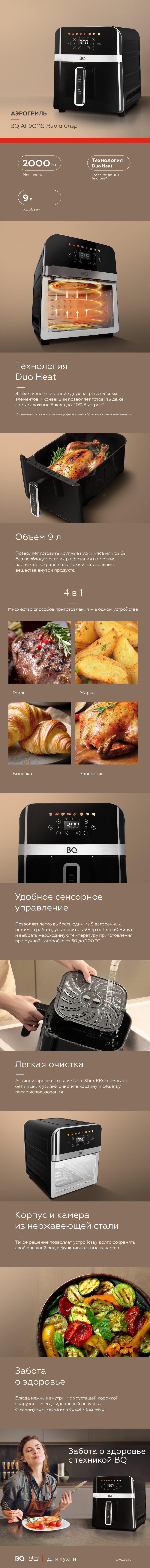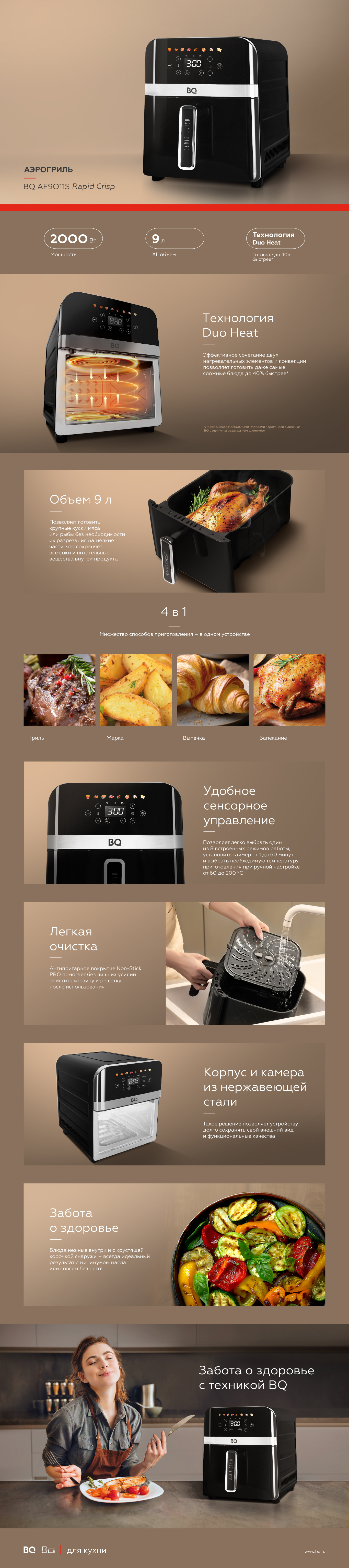 - Технология Duo Heat: готовьте до 40% быстрее благодаря мощному сочетанию двух нагревательных элементов и конвекции воздуха внутри