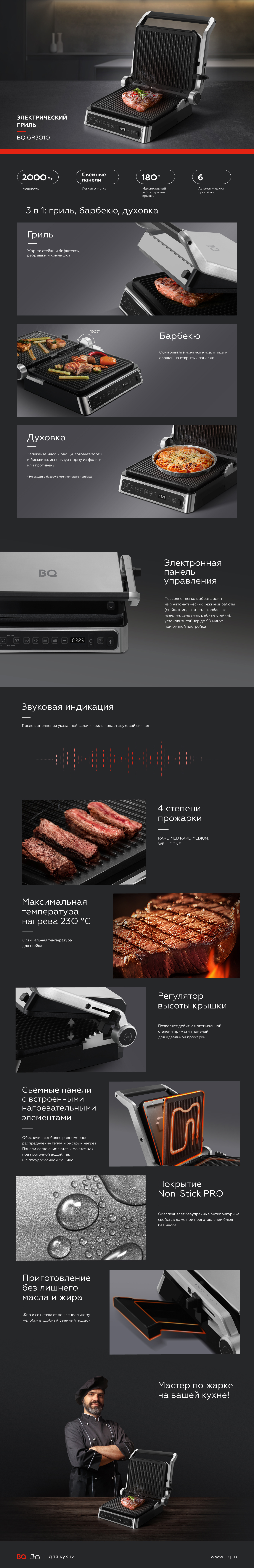 - 4 степени прожарки: RARE, MED RARE, MEDIUM, WELL DONE